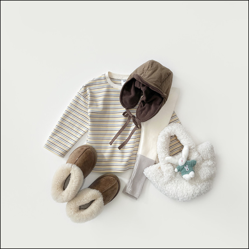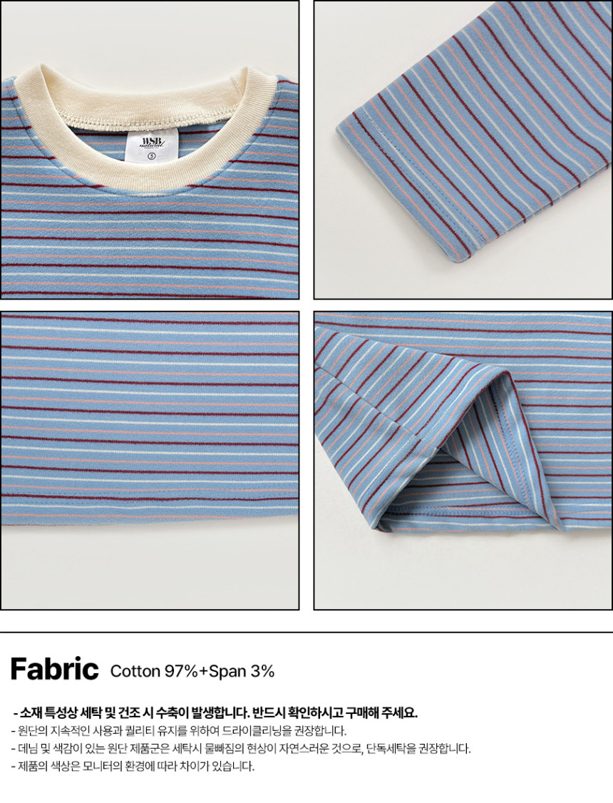 소프트 기모 배색 스트라이프 티셔츠