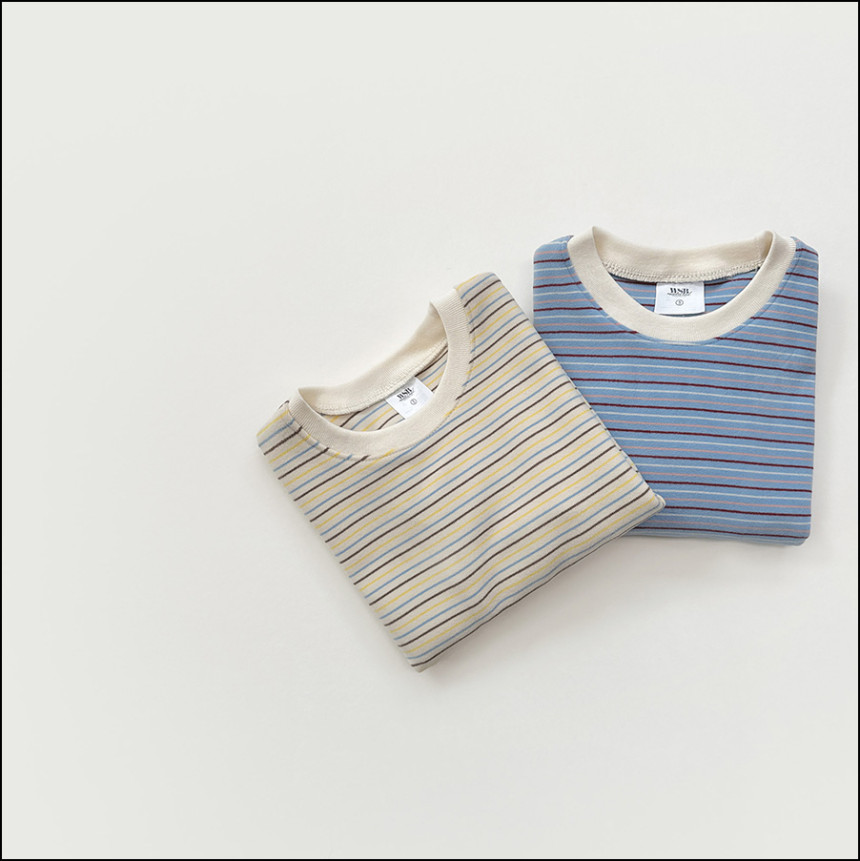칼라 배색이 이쁜 스트라이프 티셔츠 입니다.