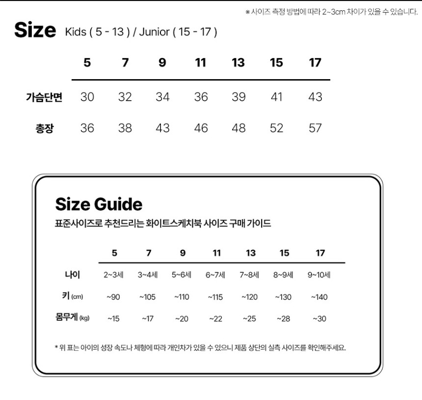 1~3Cm 차이가 있을 수 있습니다