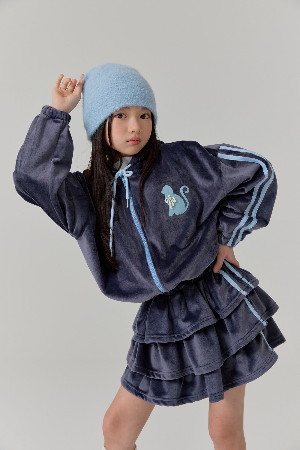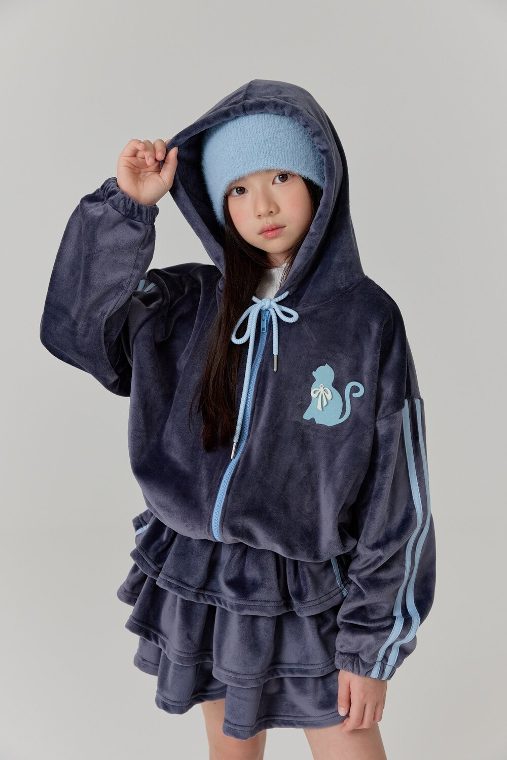 벨로아 고양이 후드 점퍼 - 다크블루