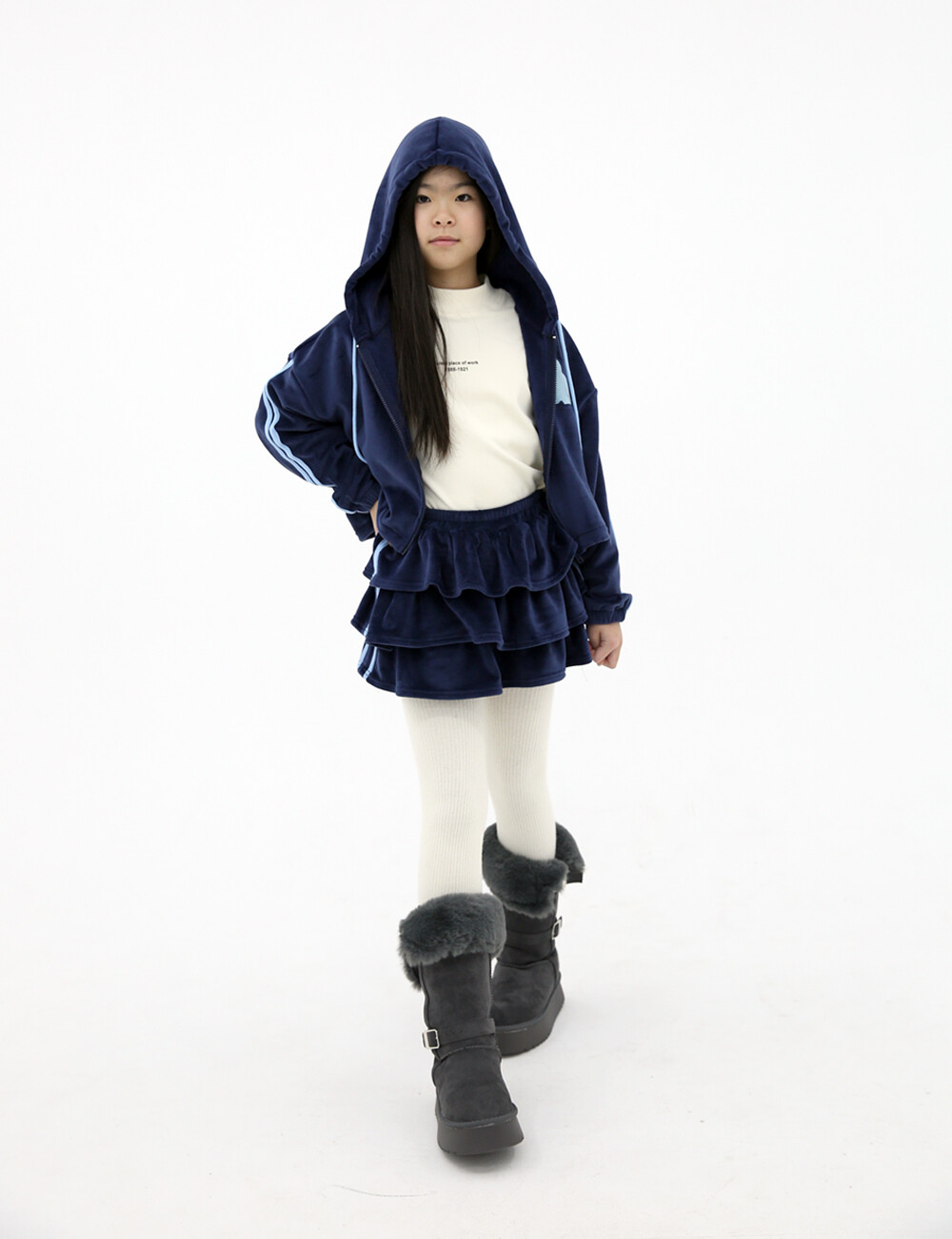 블루톤의 시크한 후드를 더해 걸크러쉬 캐쥬얼 웨어