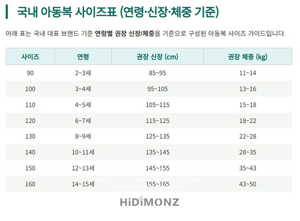 | 160 | 14~15세 | 155~ | 48.5 | 40 | 44 | 55.5 | 21 | 10 |